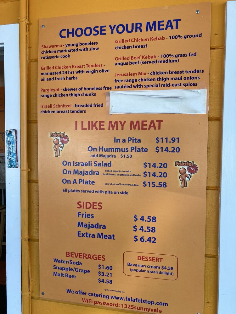 At Falafel Stop, located in Sunnyvale, CA, you'll find a Middle Eastern haven with a focus on delicious falafel creations. The menu boasts vegan and vegetarian options, with generous portions and a casual, inviting atmosphere. Customers praise the Chicken Shawarma plate and the flavorful hummus, baba ganoush, and salad accompaniments. The service is quick and friendly, making for a pleasant dining experience. Special mentions go to the fluffy pita bread and the variety of sauces that enhance the dishes. Despite some parking challenges, the quality of the food and the quick service make Falafel Stop a must-visit for those craving fresh and authentic Middle Eastern cuisine.